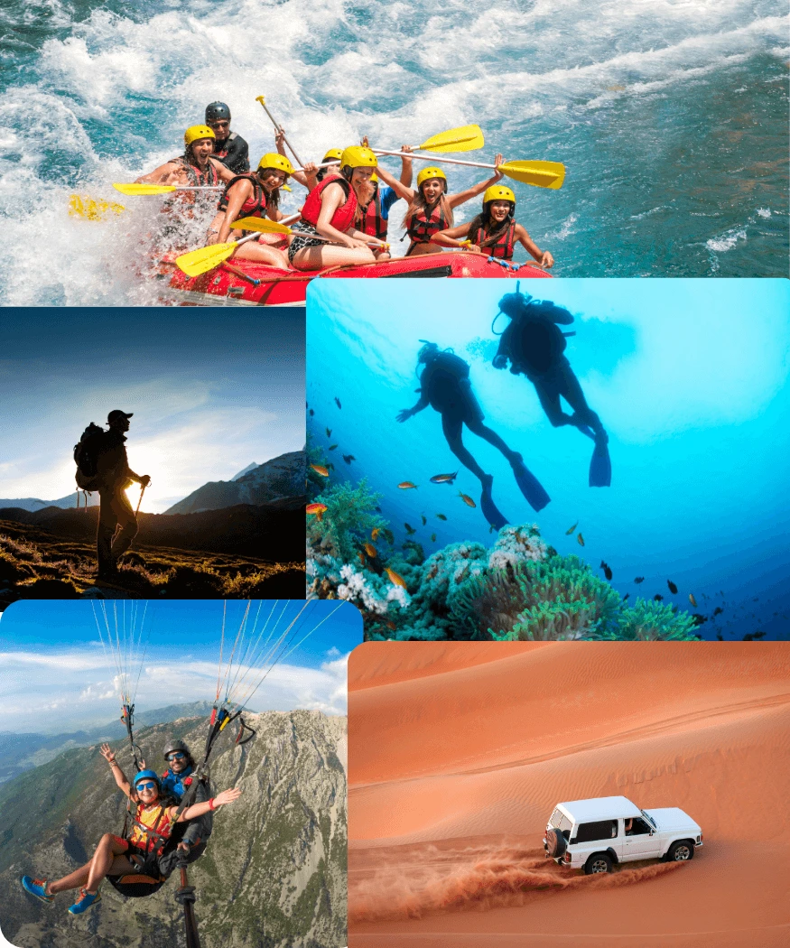 From white-water rafting in Rishikesh to trekking in the Himalayas, paragliding in Manali, desert safaris in Rajasthan, and scuba diving in the Andamans